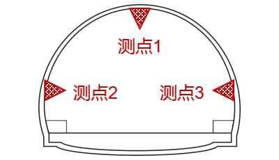 场景一:同一监测断面 3个传感器按要求布置于顶拱与两侧壁,同时监测3个测点 | |