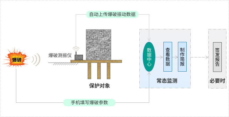 爆破振动常态化监测时,不仅需要设备能快速安装、任意切换项目,还需要快速获取现场数据、查看监测报告,L20-X PRO即放即测,扫码自由切换项目,搭配小程序与监测系统,通过计算机、手机等上网终端便可远程控制仪器、获取现场数据和查看监测报告。